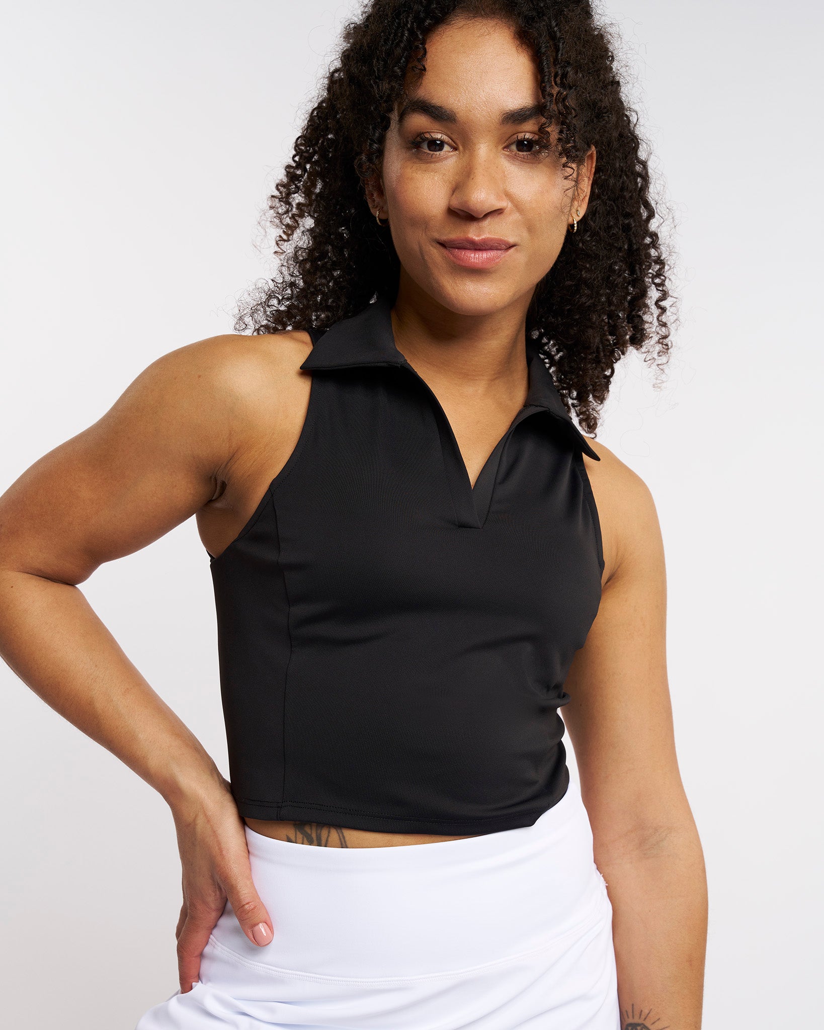 V-Neck Fitted Cropped Polo Tank Top