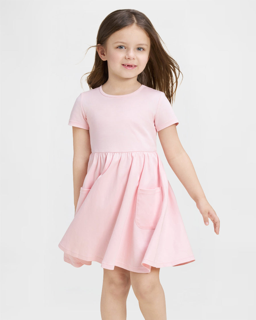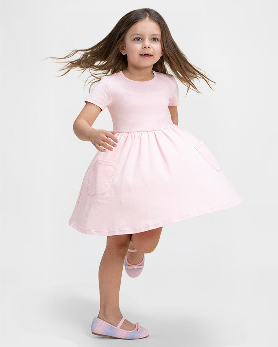 Set a good foundation with the basics, like breathable cotton tees, leggings with pockets, biker shorts, and trendy kids’ sneakers that double as cute school and summer outfits. For school days, parties, and special occasions, pair our twirl-worthy girls’ dresses and timeless Mary Janes. Prepping for athletics? We’ve got all her bases covered with volleyball shorts, tennis skirts, quick-dry tees, sports bras, and cleats so she can always hit the field (or the court) in style.
