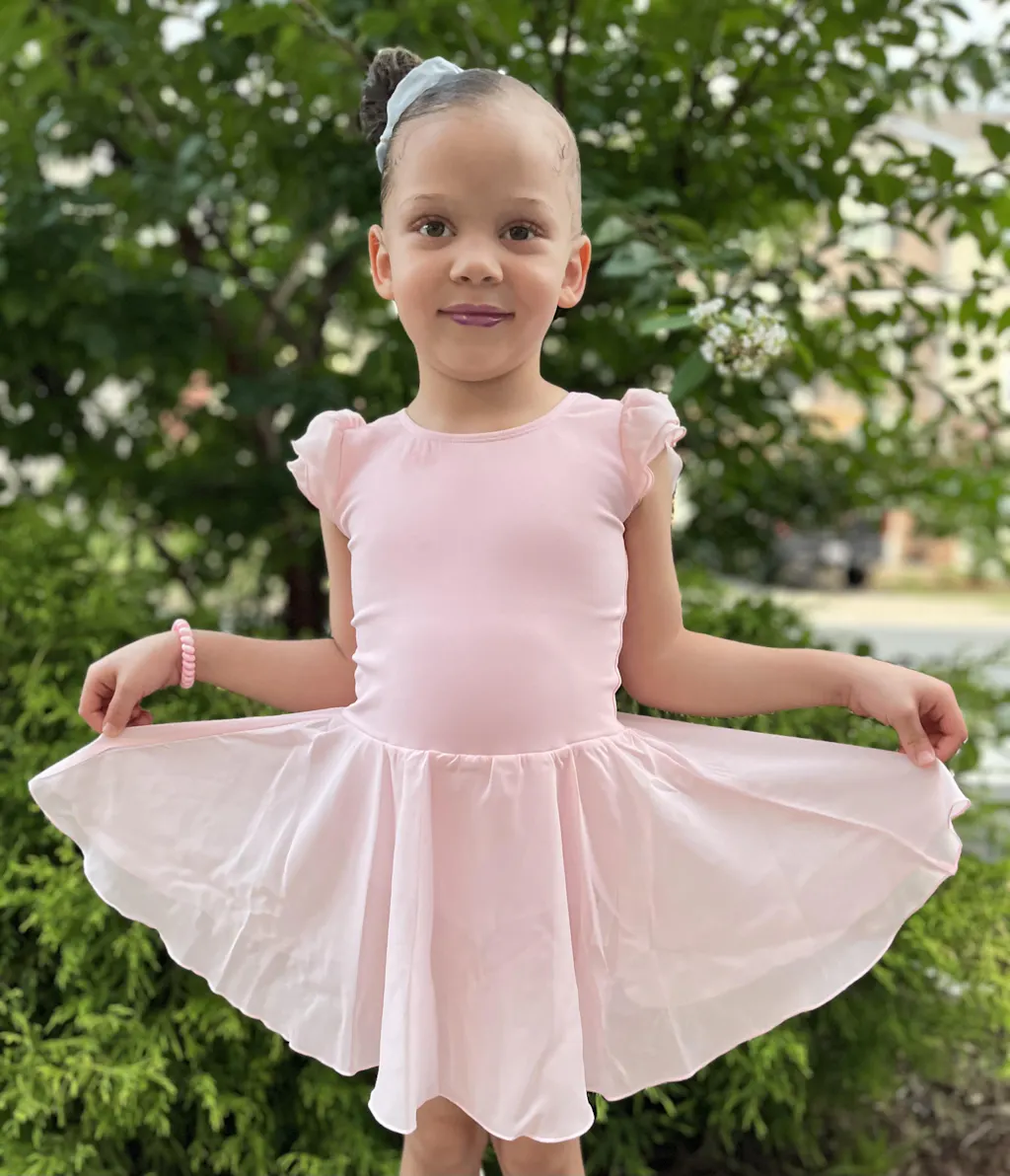 Fun Crisscross Back: With its unique crisscross design on the back, this ruffle sleeve Dress stands out as a stylish and fun choice for young girls, perfect for ballet or play.
