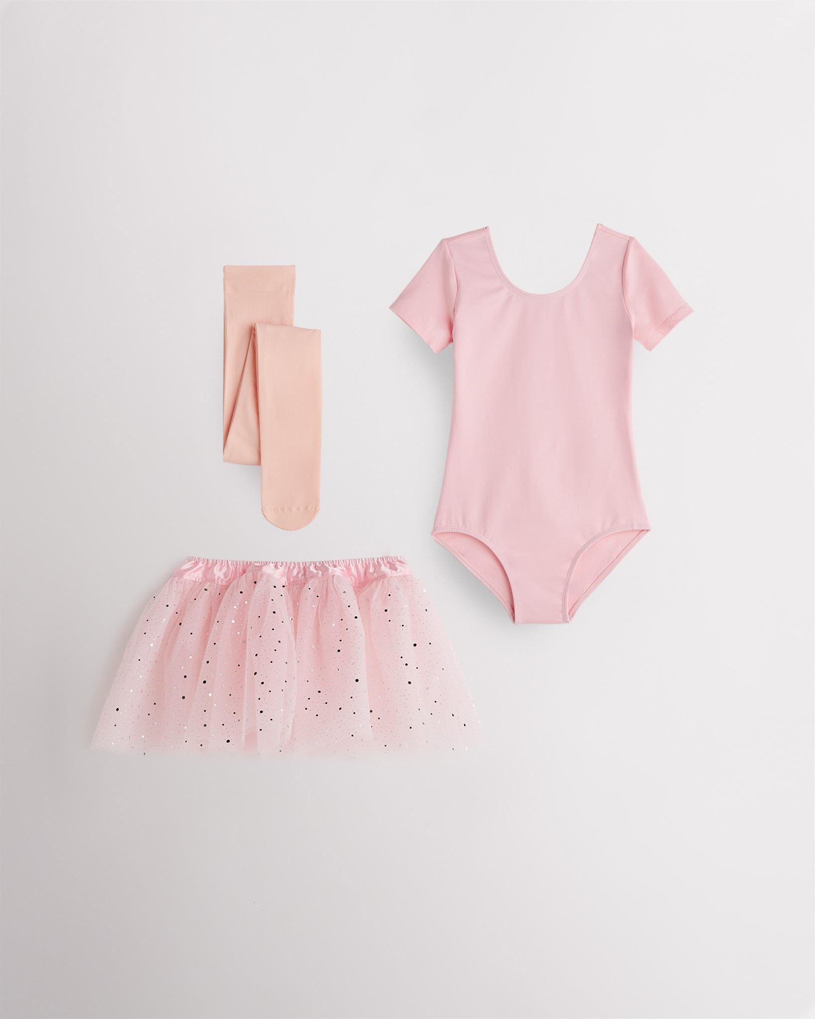 Girls Ballet Leotard Starter Kit (Short Sleeves Leotard & Sparkling Tulle Skirt & Tights)