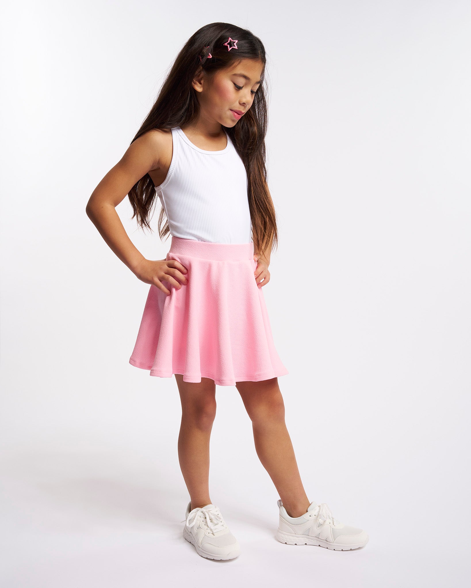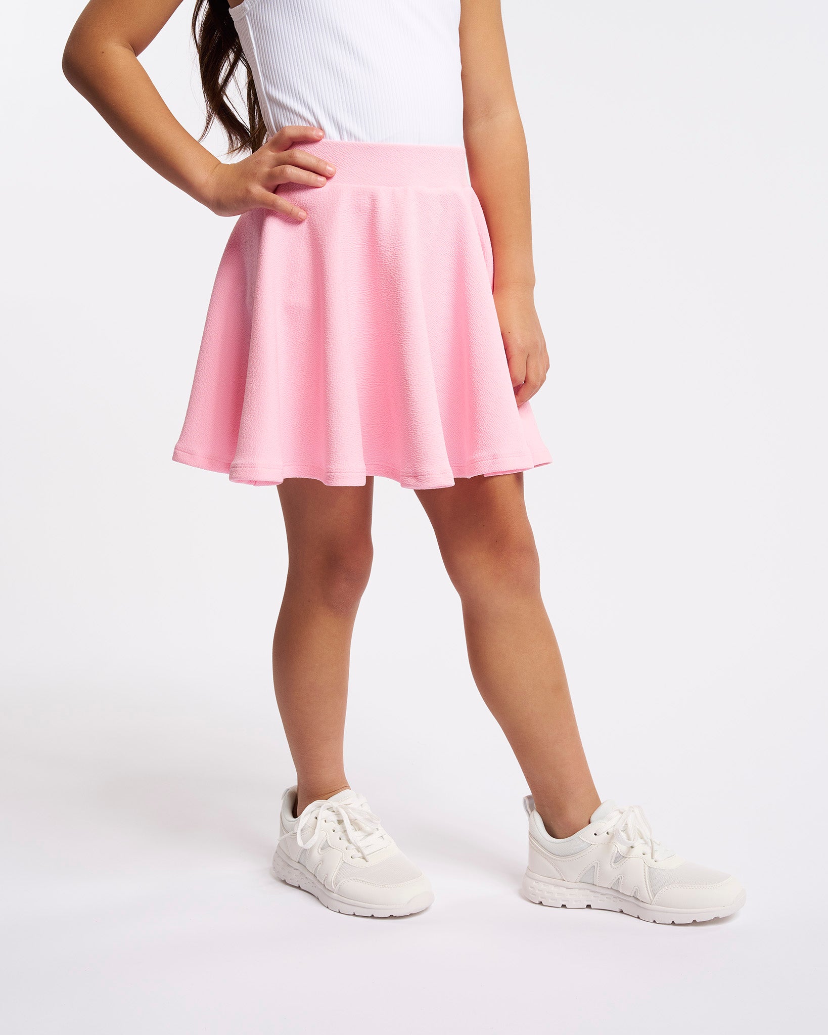 Does she want cute tennis skirt outfits that shine on and off the tennis court? She’ll love our wrinkle-resistant styles, featuring built-in shorts and pockets that pair perfectly with her favorite sneakers. When she wants to keep things breezy, our girls’ shorts, available in high-waisted, flowy, and biker short styles, are easy to mix and match with her favorite tees. And for school days and special occasions, our soft skater skorts are a must in fun, opaque colors like Electric Blue and Hot Pink. For twirl-loving girls, our tulle pieces add everyday magic. Airy tulle skirts—like our playful 5-tier tutu—feature layered ruffles, stretchy waistbands, and soft linings for all-day comfort.
