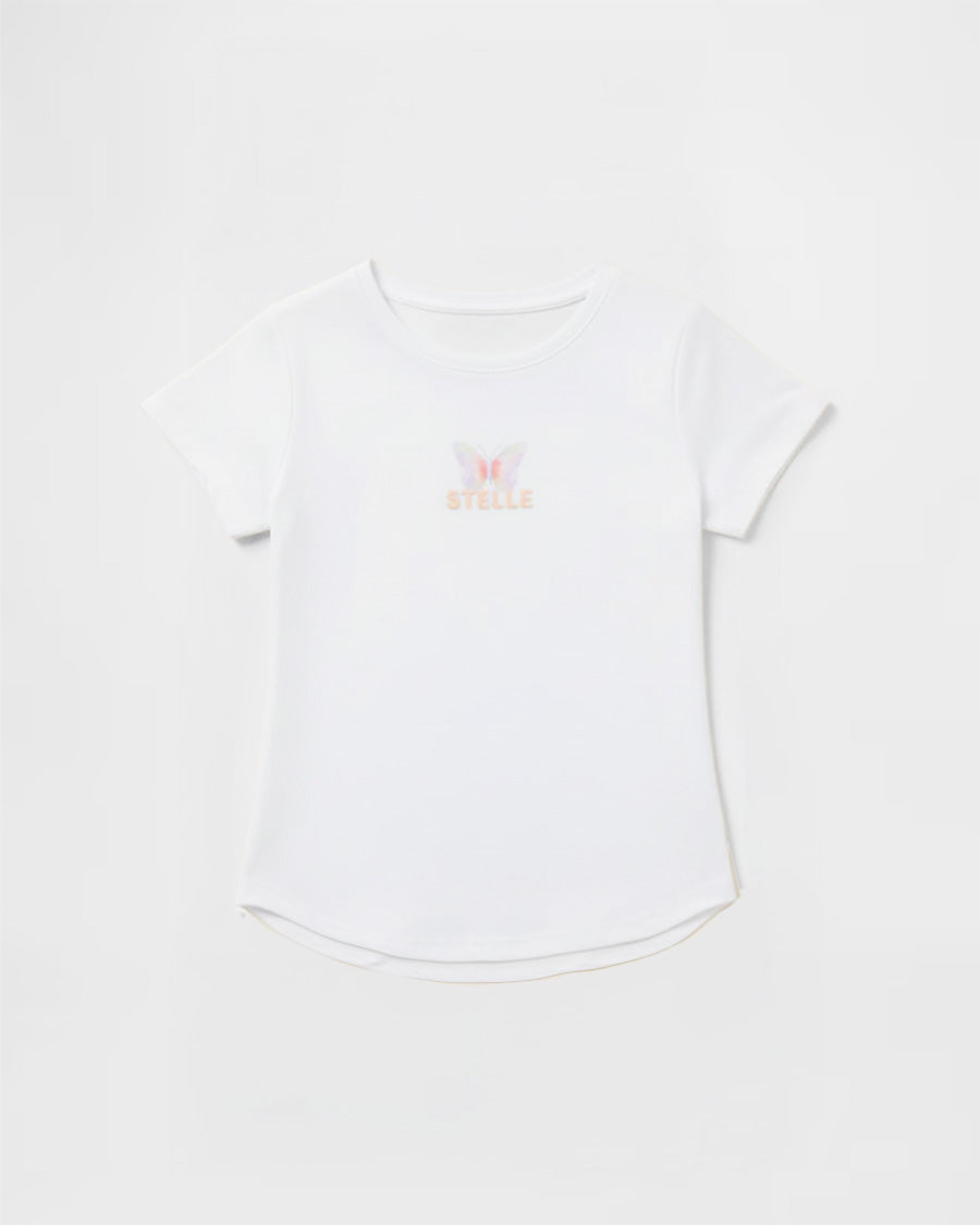 Our soft and breathable girls’ t-shirts combine the latest trends with fabrics she’ll love to wear all day. Pair an oversized white t-shirt with leggings for cozy days or a fun ringer tee with biker shorts for a sweet look. Our tank tops & short sets are also the perfect summer clothes. Got a little athlete? We have the best athletic shirts around, featuring quick-dry fabrics that make every move more fun—plus Y-back sports bras that provide support and full range of motion.
