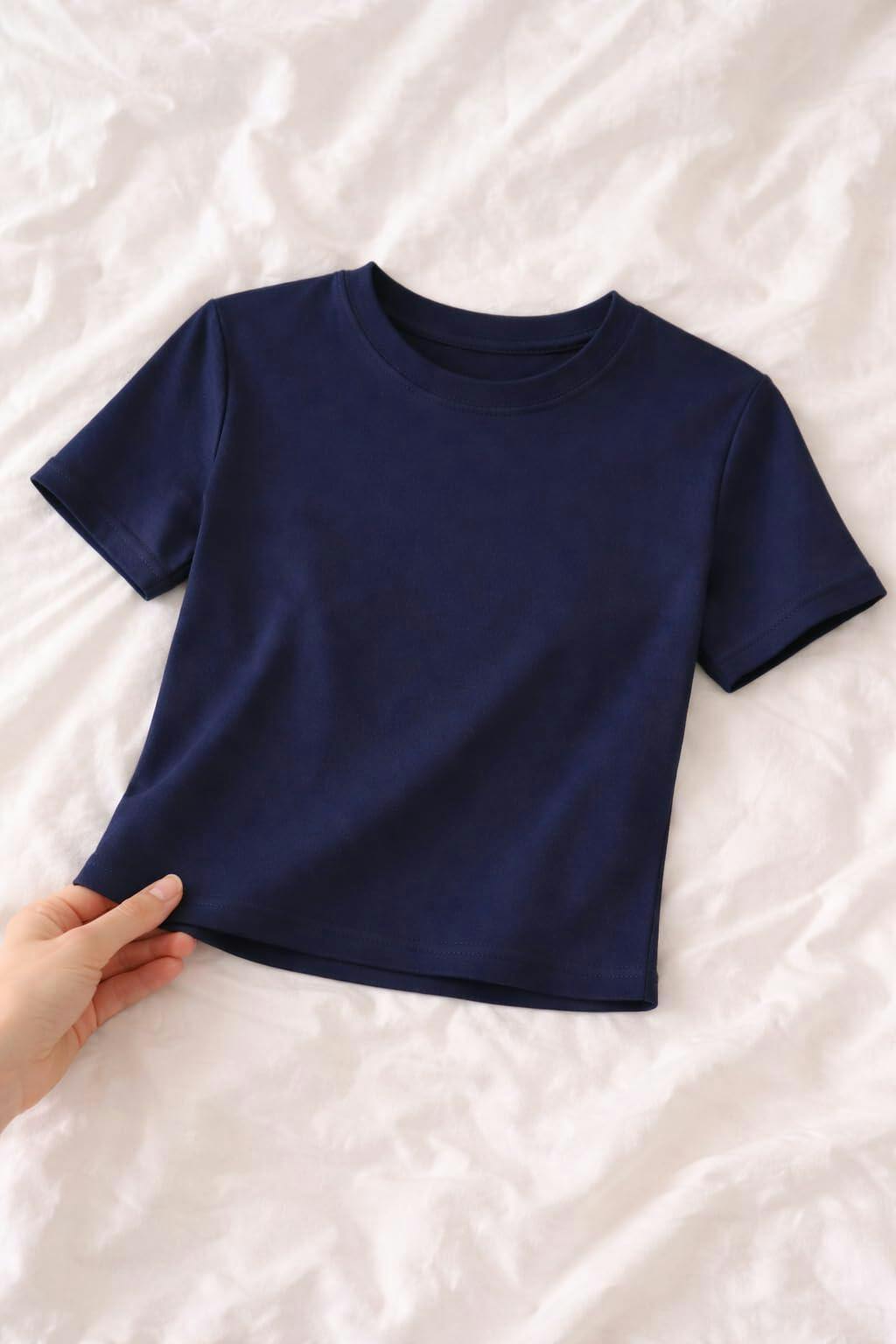 This is such a great basic tee and easily a wardrobe staple. The cotton fabric is soft, breathable, and comfortable, making it perfect for everyday wear, especially in warmer weather. It feels lightweight but not thin or flimsy, which is exactly what I look for in a basic top. The crewneck and short sleeve design is classic and flattering, and the cropped length is just right. It hits at a really nice spot without being too short, making it easy to pair with high-waisted jeans, skirts, or shorts. The fit is true to size and gives a clean, polished look without feeling tight. The quality is impressive for the price. The stitching is neat, the fabric holds its shape well, and it washes nicely without shrinking or losing softness. The solid color looks just like the photos and is easy to style with almost anything.