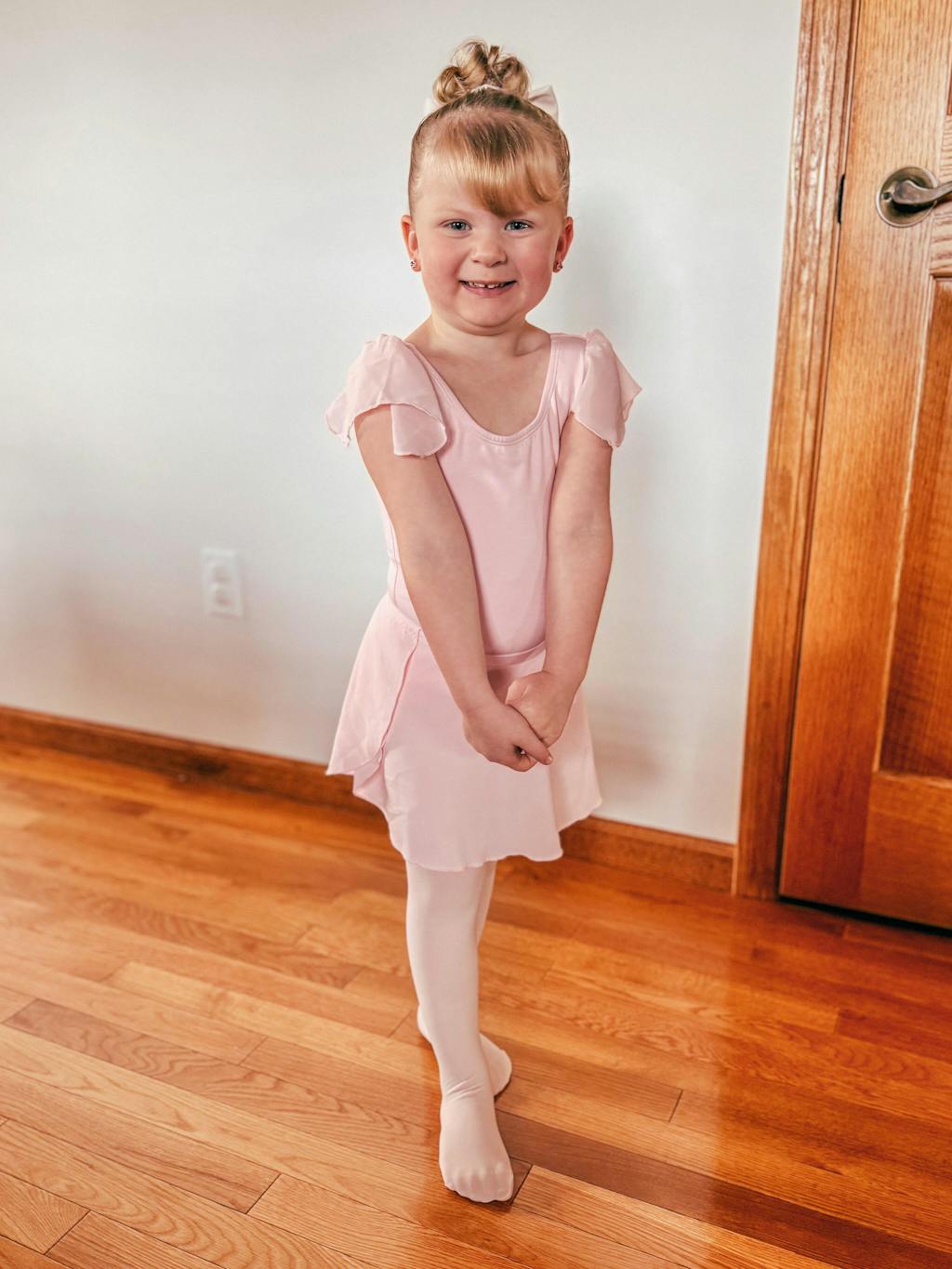 Perfect Beginner Set: This ballet starter kit includes a soft leotard, a chiffon tie skirt, and footed ballet pink tights, offering everything a toddler girl needs to begin her dance journey.