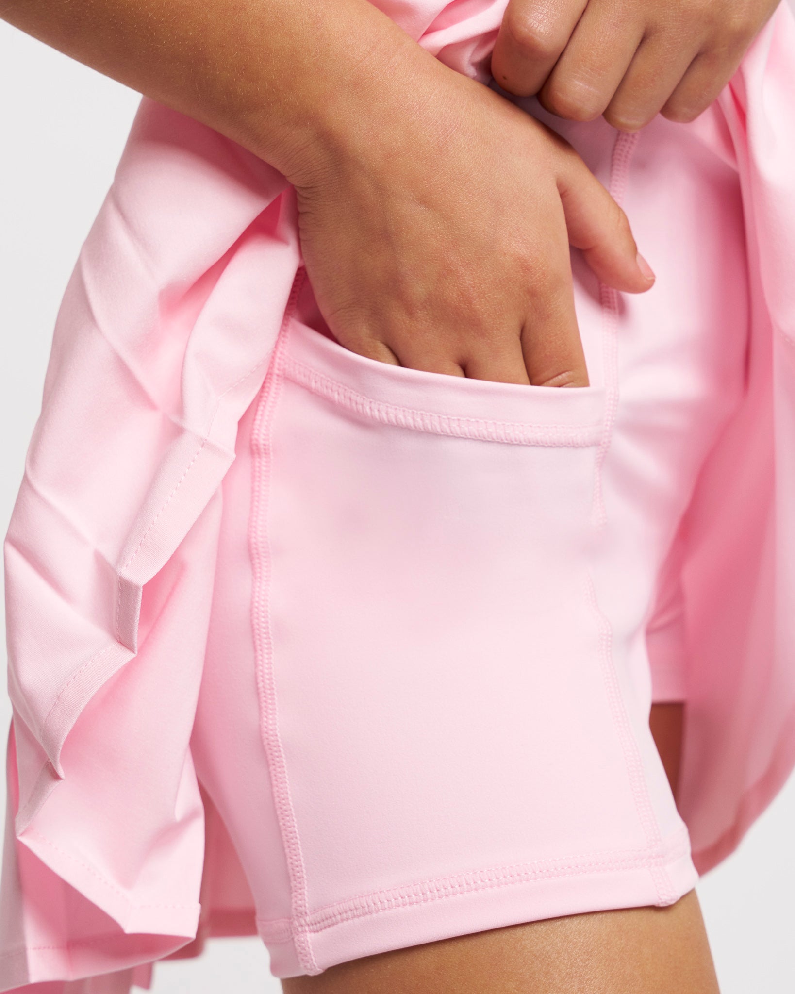Double Pockets: Kids have essentials, too, which is why our stylish tennis skorts have built-in pockets! Our practical design includes two convenient pockets: one made to hold an extra ball and one for items like her phone, house key, or cash.