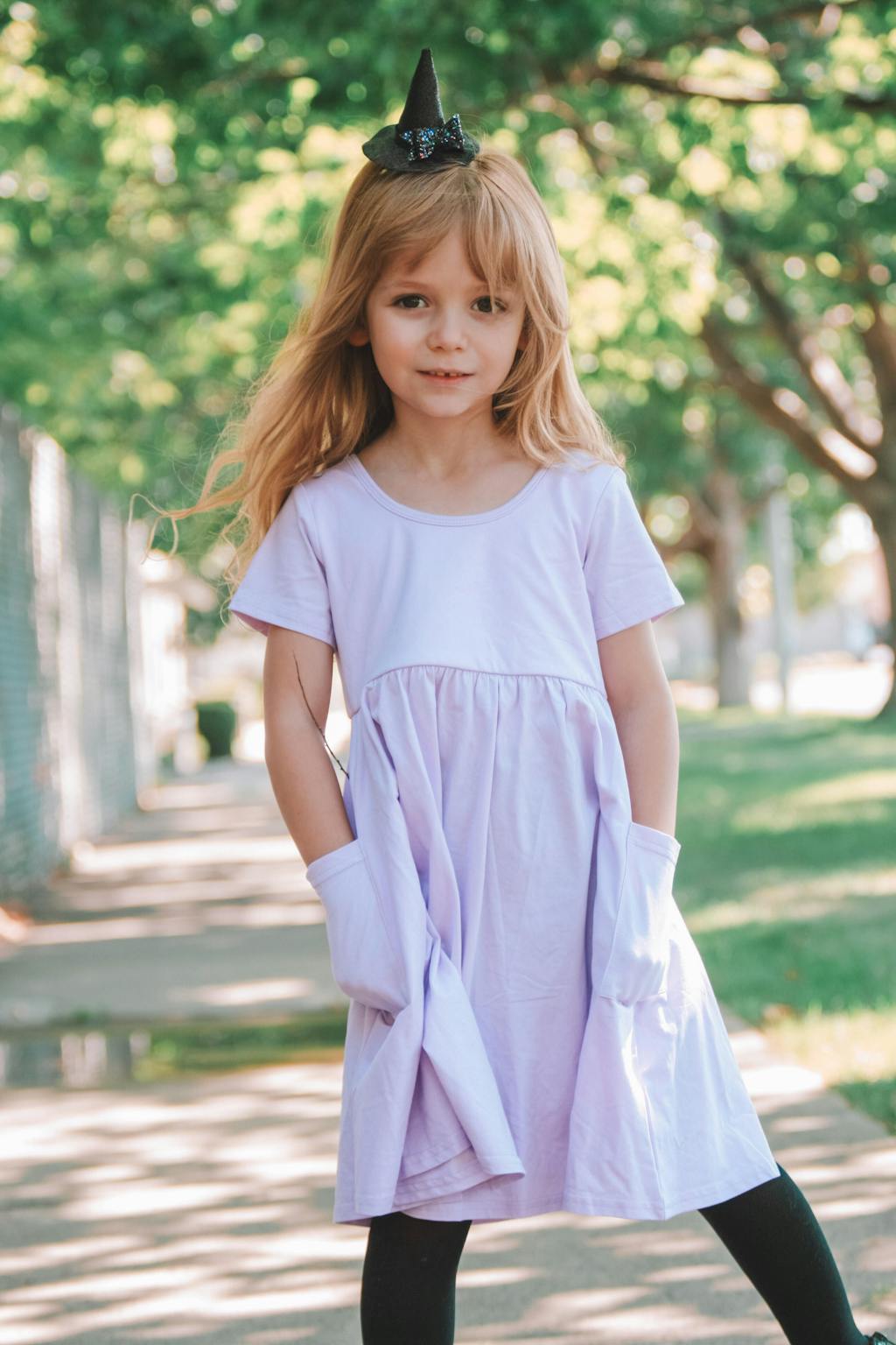 Adorable Color Options: Available in pink, lavender, and purple, this A-line dress with pockets allows your child to express their style effortlessly.