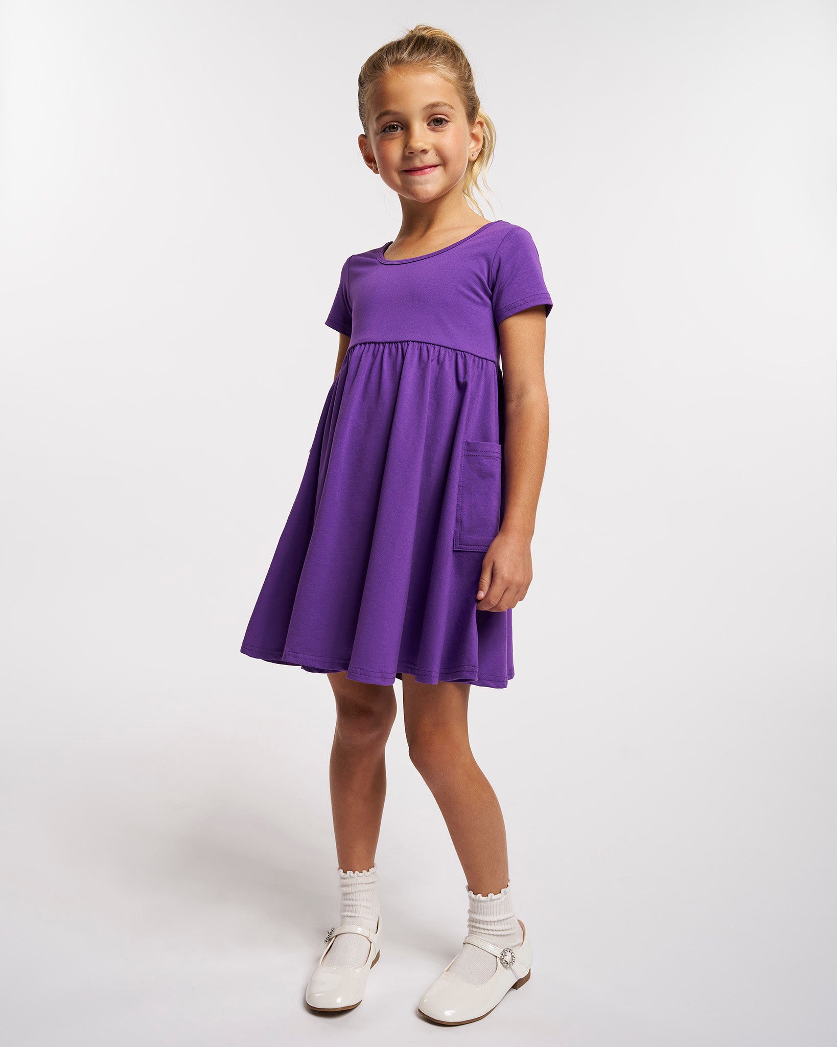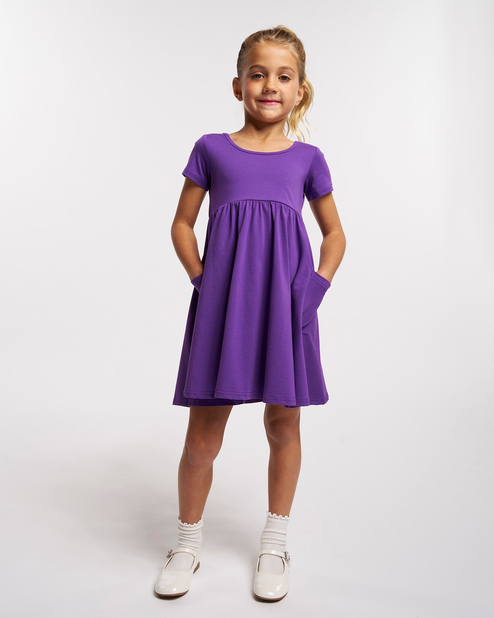 Girls Short Sleeve A-Line Twirly Dress with Pockets