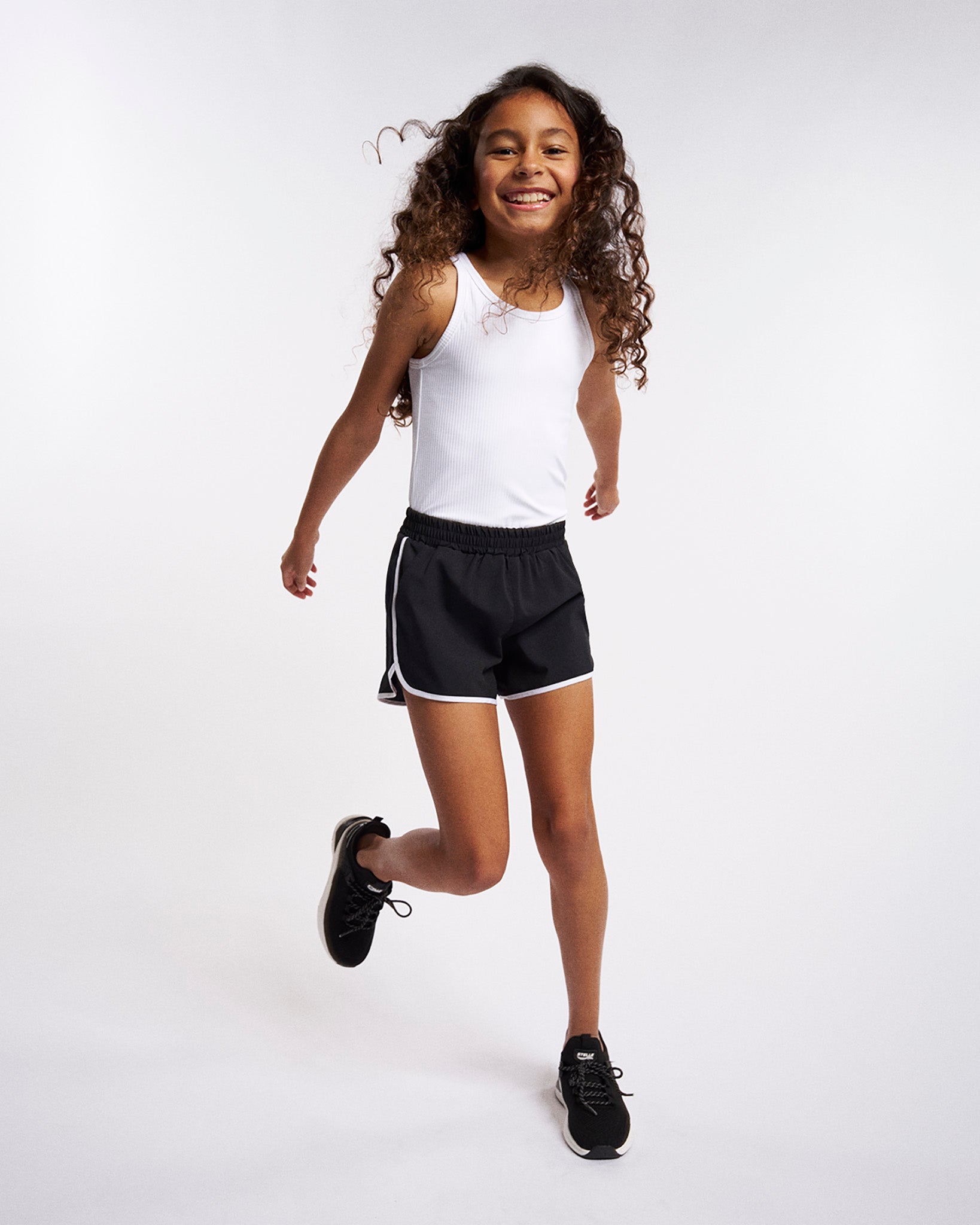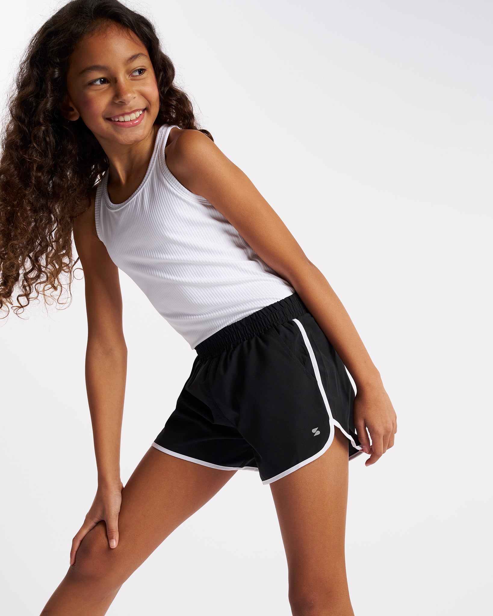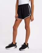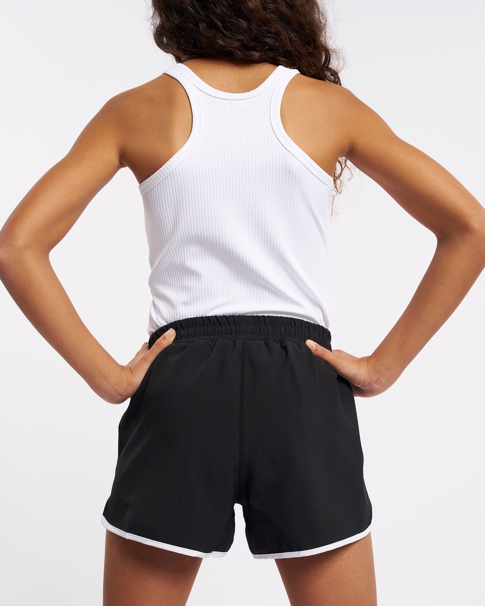 Soft Activewear Material: Whether your little athlete is hitting the court, the track, or the playground, these comfy running shorts will be her first choice! Crafted with soft four-way stretch fabric, they seamlessly move with her at every step. We even finished them off with water-repellent technology to keep water and rain at bay
