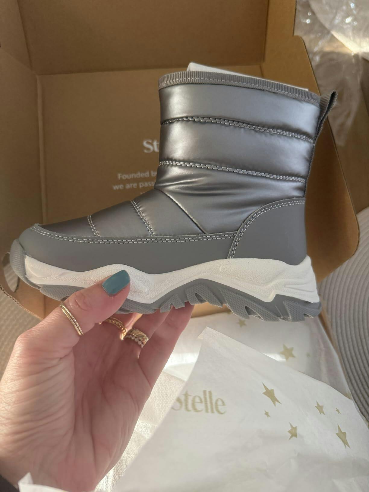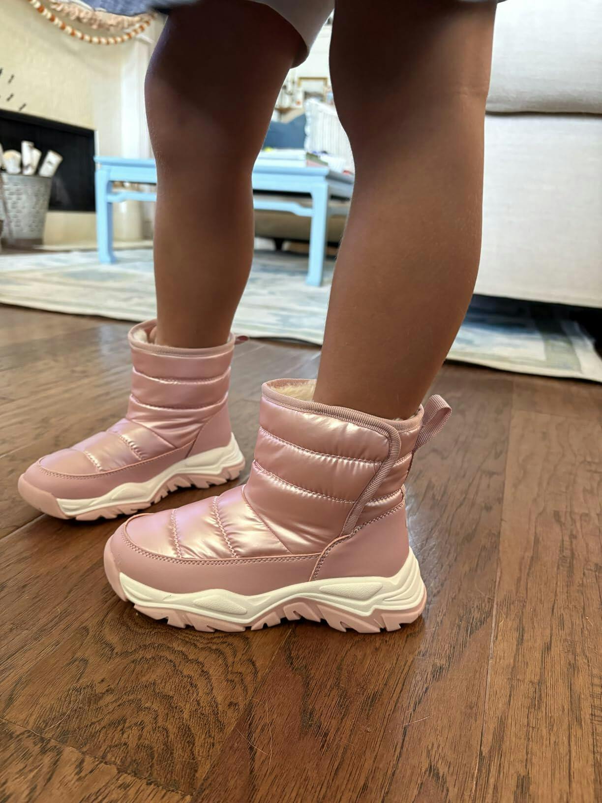 Winter weather is no match for our In A Flurry Kids Snow Boots. A soft faux fur lining, waterproof exterior, and grippy outsole keep little feet warm and steady. The adjustable side hook closure makes getting out the door easy, so they’re ready for school runs, sledding, and every snowy adventure.