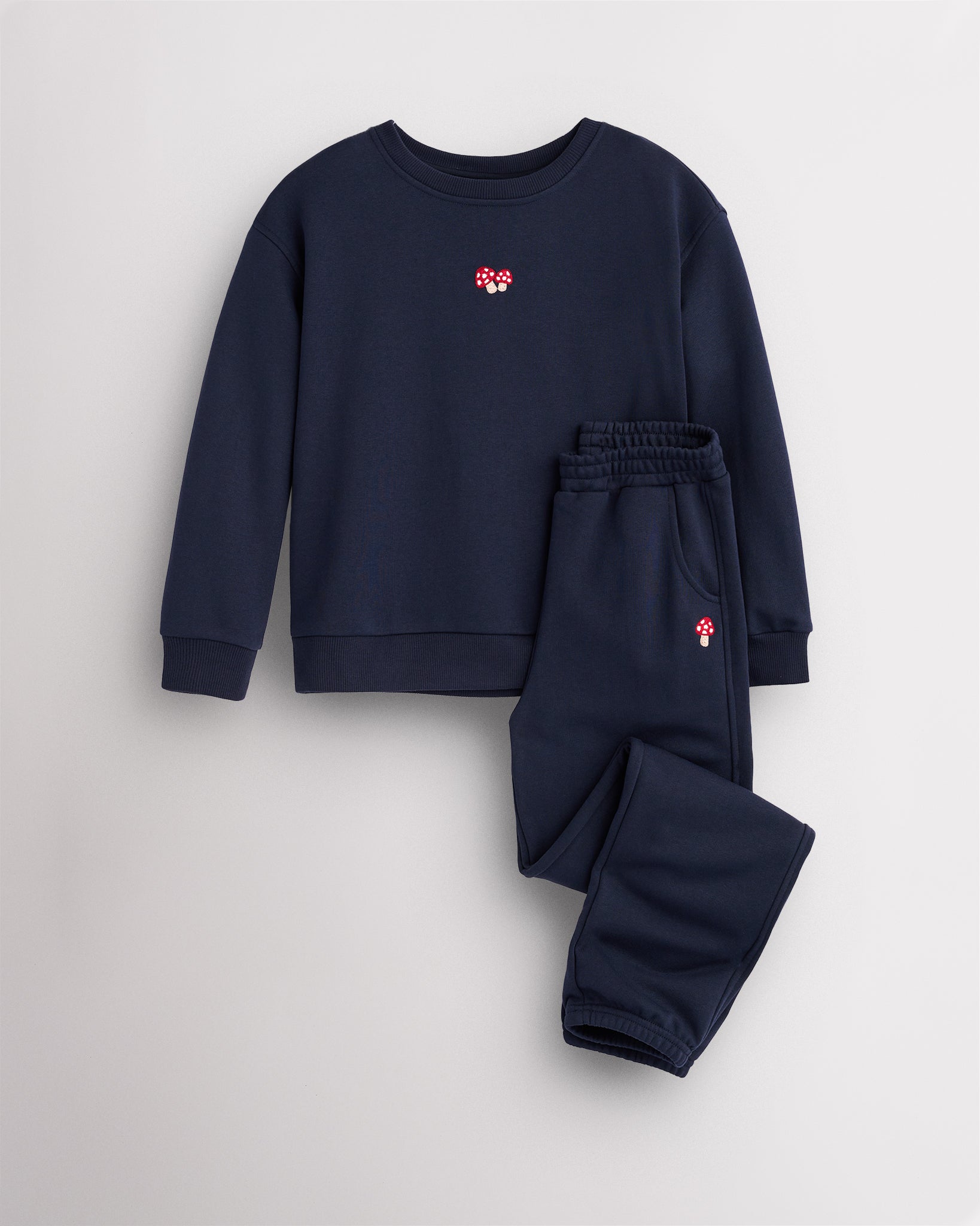 Is your little one looking for a set that's equal parts cozy and cute? This 2-piece kids sweatsuit—crewneck and joggers—is crafted from soft cotton-blend terry for all-day wear. With fun embroidered mushroom accents and mix-and-match options, it's perfect for everyday adventures.