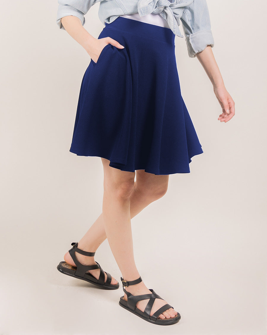 Modern and modest, our Women's Knee-Length Flared Skirt means business—in the best way. With a comfy elastic waistband, subtle high-low hem for full back coverage, graceful A-line silhouette, and roomy side pockets, this flowy skirt effortlessly transitions from office hours to happy hours.