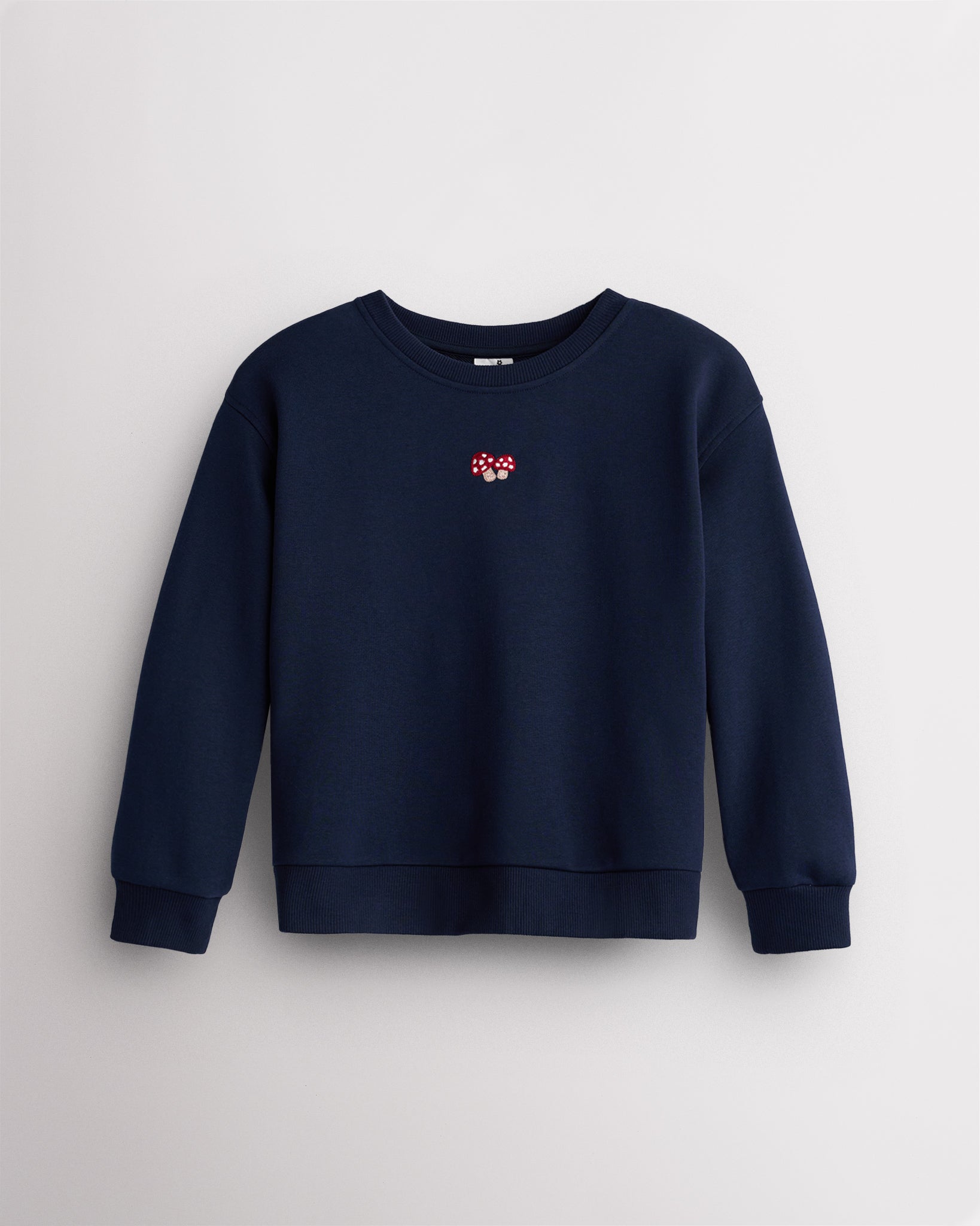 There’s so much to love about our No Sweat Kids Crewneck. Featuring an embroidered mushroom accent, this classic French terry crewneck is easy to pull on and layer. With a slightly oversized fit, this soft crewneck is a piece your kiddo will reach for all year long.